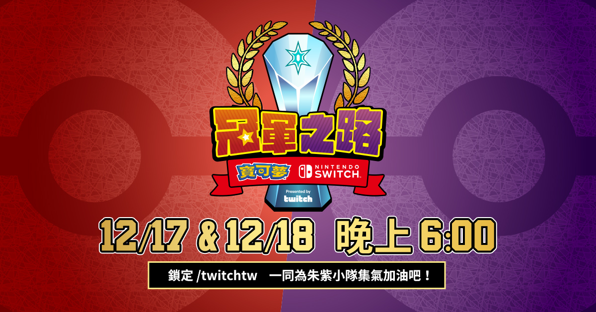 这个周末请锁定 Twitch 官方频道(/twitchtw),一起踏上《宝可梦 & Nintendo Switch 冠军之路》,享受热血的精彩赛事!