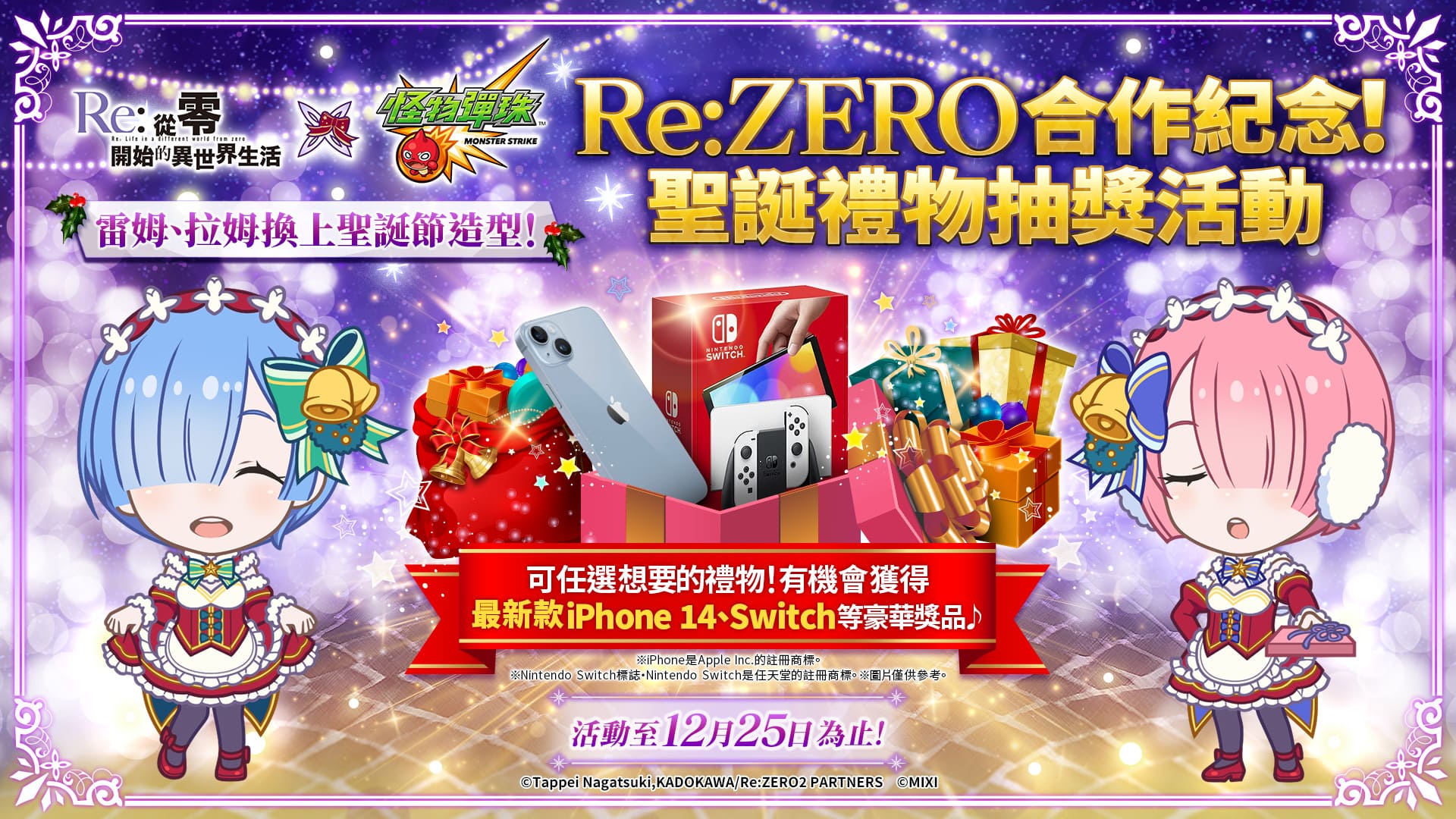 株式会社MIXI所推出的一拉一放战斗RPG手机游戏《怪物弹珠》,与电视动画《Re:从零开始的异世界生活》的圣诞节造型合作活动于12月16日(五)12:00起开跑。