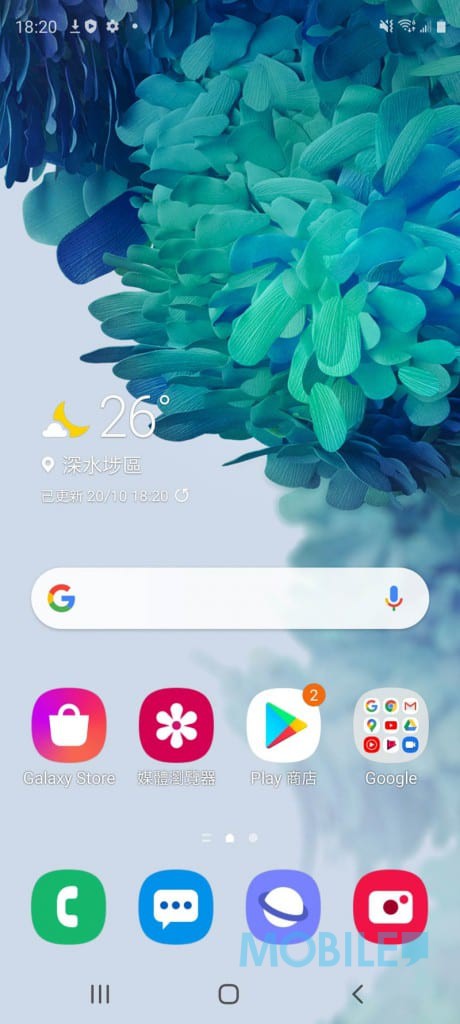 预载 Android 10 及采用自家 One UI 2.5 接口,Galaxy S20 FE 基本具备原版 S20 拥有的绝大部份功能,包括 Dolby Atmos/Dolby Atmos 游戏声效,60Hz/120Hz 画面更新率切换,及操作直观的屏幕白平衡调色界面。