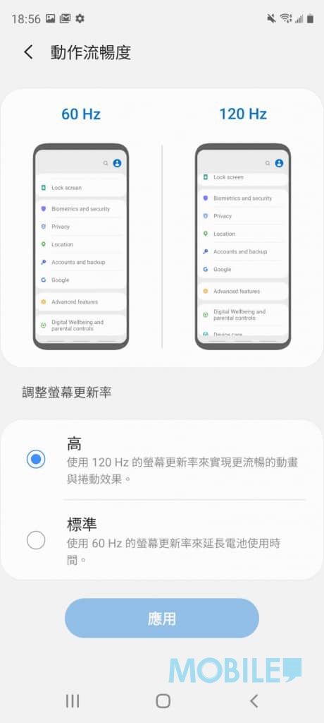 ▲ 「动作流畅度」可配置画面更新率,亦可排程按时间启动蓝光滤镜