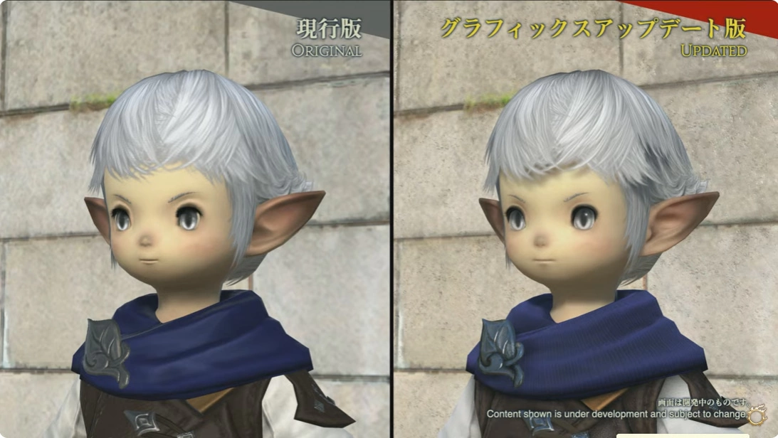 近期《FF14》不断针对画面质感的提升进行小幅度的改良与调整,首次大规模升级会在 7.0 进行,可以看到所有种族的脸部特征、表情、发丝都有着明显的强化; 此外即便是深色肤色,也能更轻松的表现出立体感和质感,而喜欢染色的玩家们之后就能在两个地方进行染色。