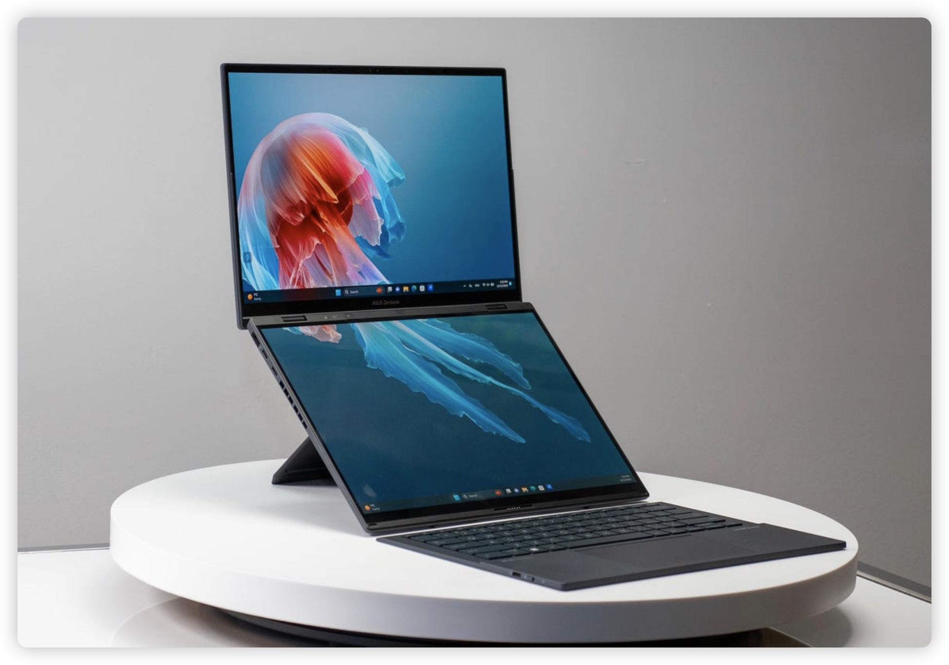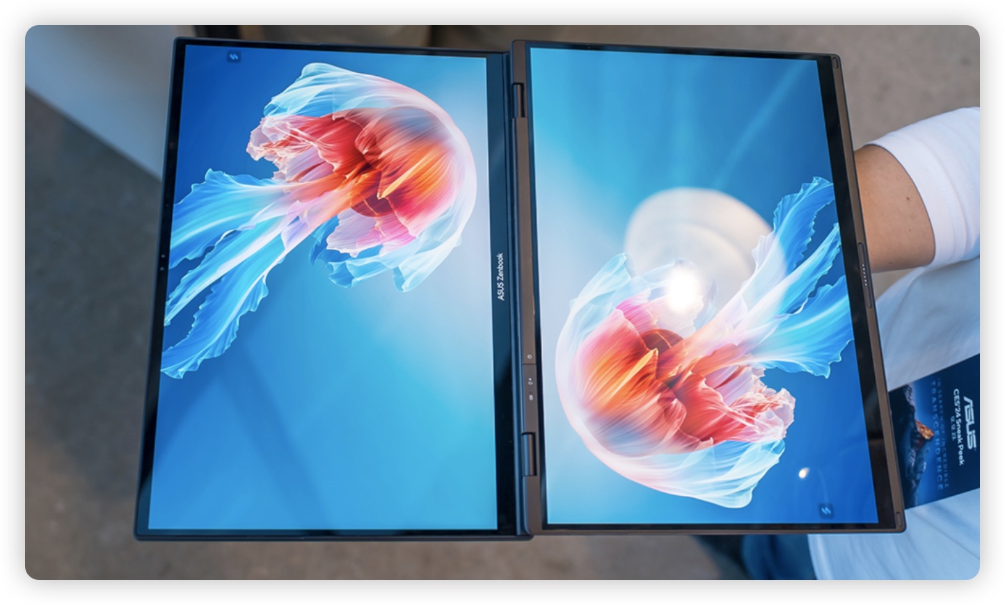 来到2024年的消费电子展(CES),华硕也推出了最新的双屏幕笔记本Zenbook Duo,一款配备两个相同大小14寸屏幕的双屏幕笔记本电脑。 这款产品的登场,不仅代表着华硕对双屏幕笔记本的持续投入,更象征着个人电脑领域的一次重大突破。