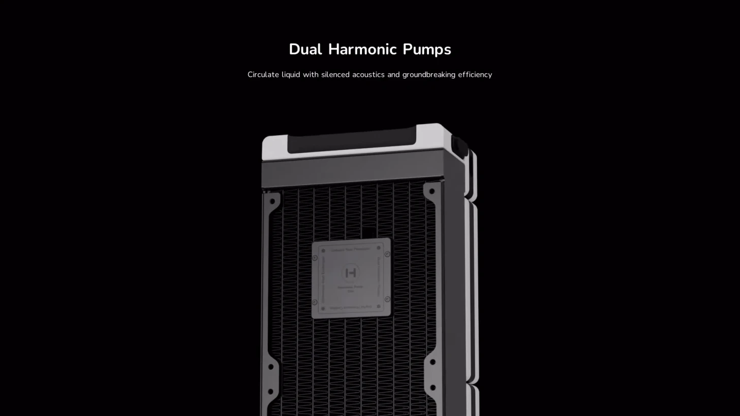 散热能力方面包括「双谐波泵」(dual harmonic pumps) 设计,主打市场上最低噪音水平和良好热效率循环液体,采用航空级陶瓷轴承,确保更长使用寿命。 散热风扇方面搭载两组32 mm的THICC FP12风扇,其叶片与LCP(液晶聚合物)结合以确保最佳性能和耐用性,最高转速可达3000RPM,并提供智慧零转速功能以应对轻负载使用环境。