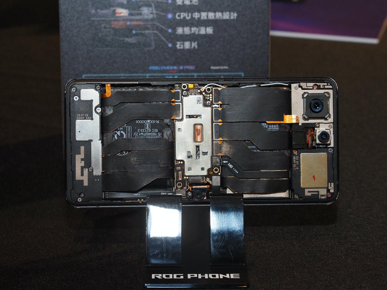 ▲ROG Phone 8虽然变为纤薄设计但芯片仍置中,中间铜色长条型为加速将芯片温度传导到机背的速冷散热棒