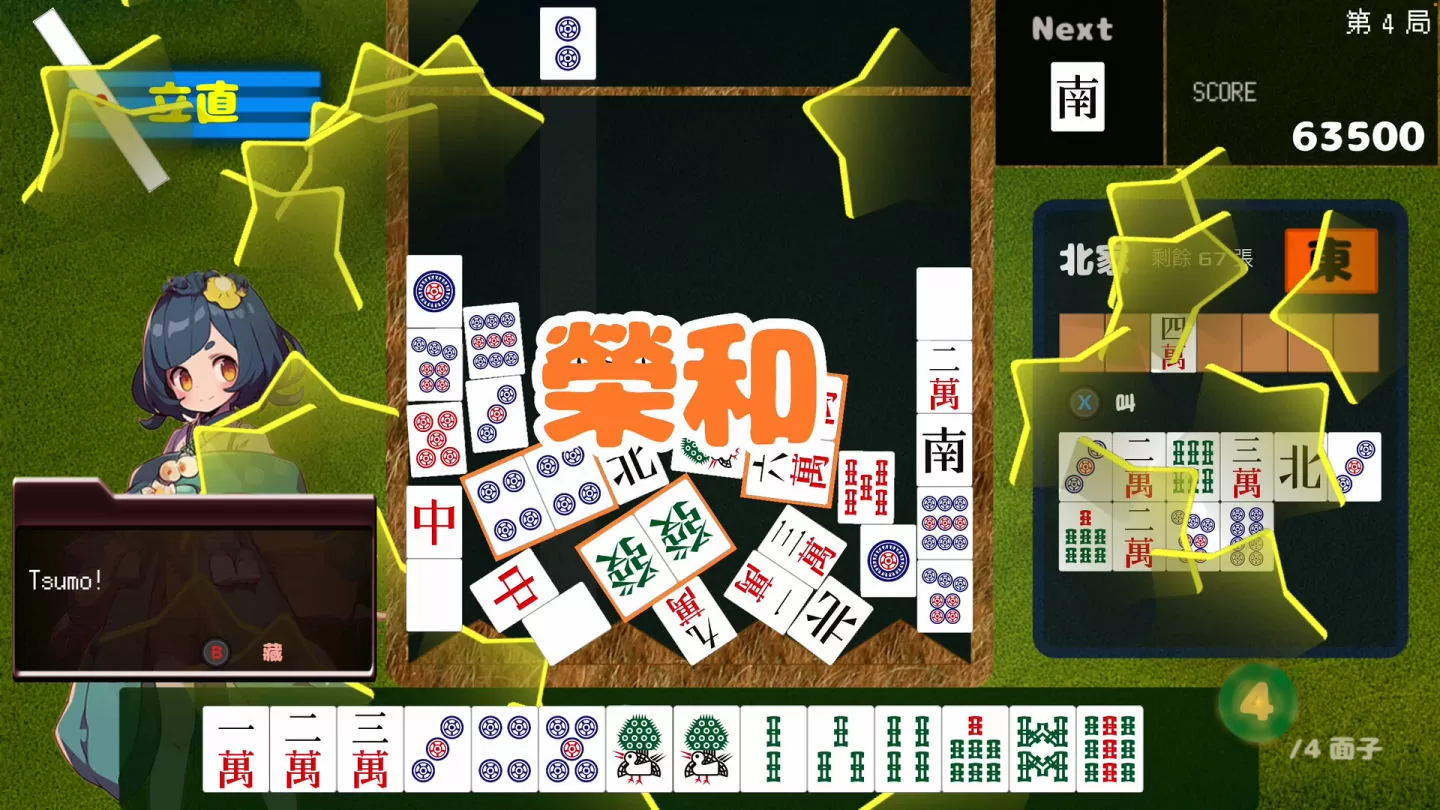 《Drop Mahjong tiles》是一款结合落下型益智游戏和麻将的作品,玩家的目标是利用掉落的麻将牌创造出一个役牌来过关,但当麻将牌填满屏幕时就会结束游戏,因此要删除麻将牌来获得高分,而消除麻将牌的方式就是组成一组顺子或暗刻,并移动到下方玩家的手牌上。