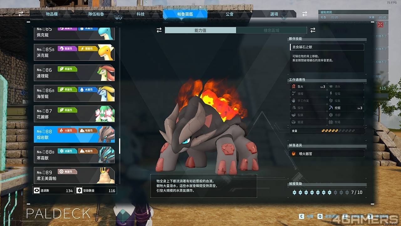另外也相当推荐熔岩兽,它拥有挖掘3级与生火3级,虽然与碎岩龟的食量一样,但似乎熔岩兽比较不需要休息。