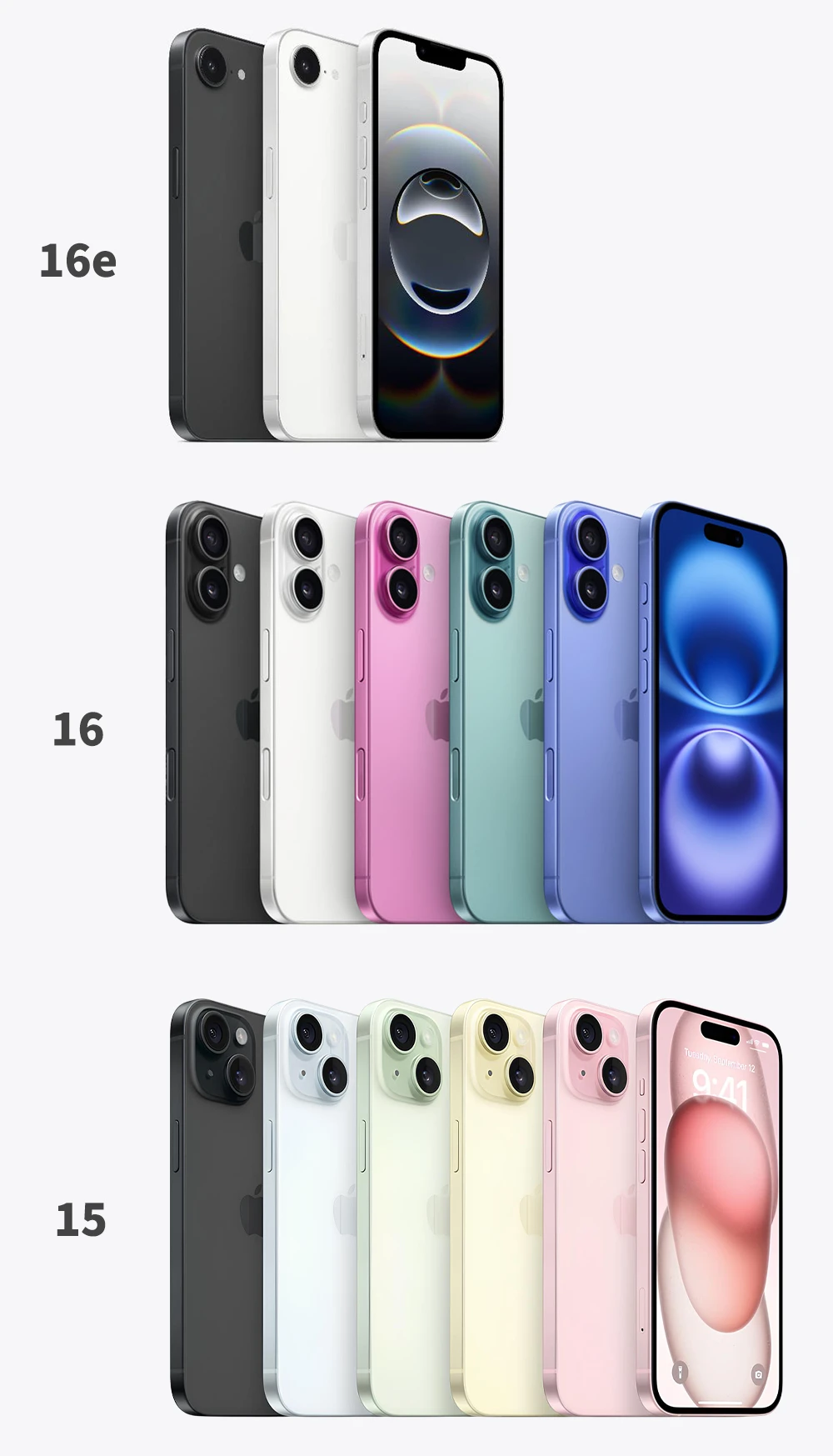 | iPhone 16e | iPhone 16 | iPhone 15 |