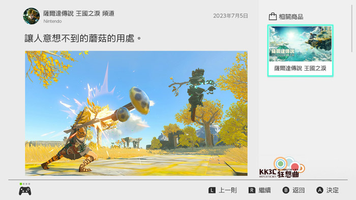 就可以找到「萨尔达传说 王国之泪频道」,点击最新发布的的新闻活动页面。