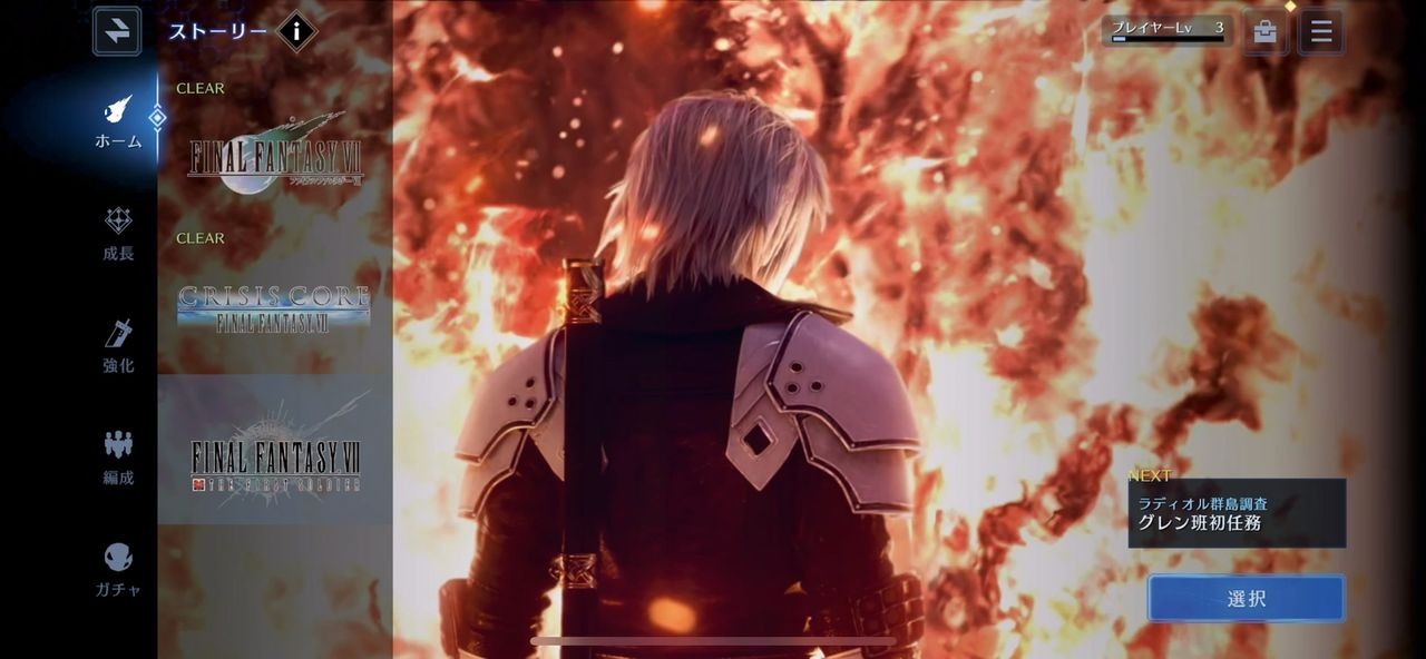章节式的玩法如同《超级机器人大战DD》,玩家可以选择自己想玩的故事剧本,这次CB有三个章节可以选择,分别是FF7本传、核心危机和TTTFIRST SOLDIER。 不过在目前 CB 时由于教学引导,限定要从本传接着核心危机再到 THE FIRST SOLDIER 依序游玩。