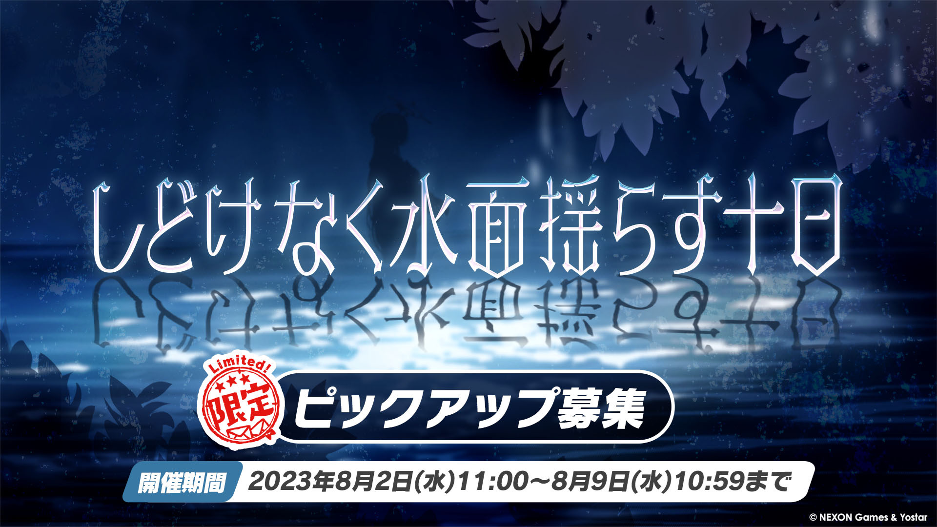 此外,8 月 2 日 10:00 至 8 月 9 日 9:59 将举办特選招募「起伏不定水面荡漾的十天(暫譯,しどけなく水面揺らす十日),特选对象为 ★3「花子(泳装)」(CV:豊田萌絵),限定学生 ★3「若藻」(CV:斎藤千和)也将于同一期间内复刻举办特选招募。