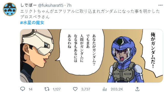 这次第 14 集可说是给了相当大的情报量,也让周日推特上的流行趋势瞬间被水星的魔女攻占…