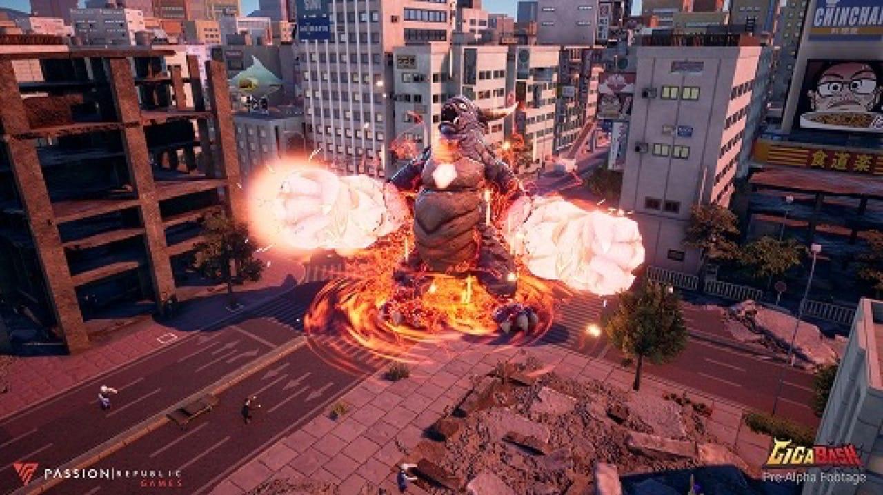 《GigaBash 巨击大乱斗》结合了《Power Stone》、《Super Smash Bros》和《War of the Monsters》这类大作的混战机制和创意思维,并以怪兽电影规模的方式呈现。