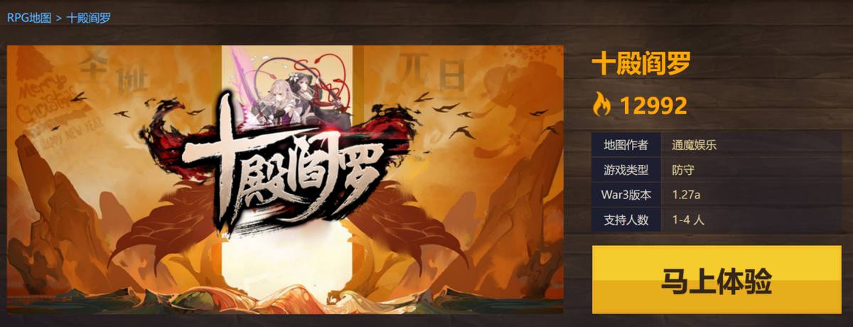 这个图就是现在官方对战平台上最火爆的防守游戏《十殿阎罗》,这张图一经推出就霸占了平台上热门榜的榜首,至今也依然是热门榜前三的常客。