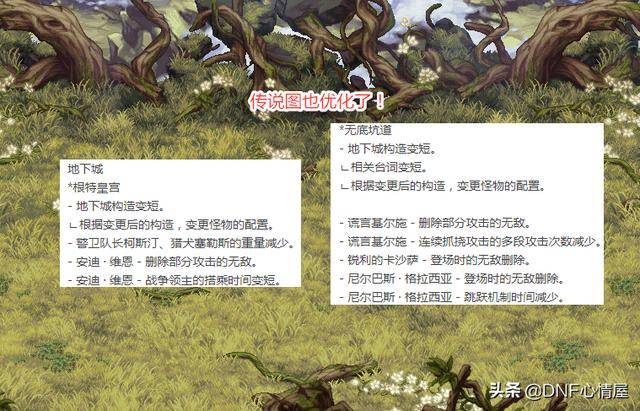 众所周知,没有改版前,怪从两边出,很影响效率。而今出怪位置调整,中间随着等快速下来,一个技能可带走!因此,打“2 2”每日痛苦地下室副本,这下要快许多,竞速时间缩短了。暗黑神殿也同样改动,隐藏地下城条件降低,且BOSS伤害削弱。