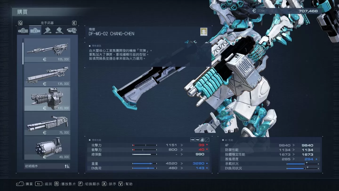 - DF-MG-02 CHANG-CHEN: 增加攻击力/总弹药数量/弹药速度,减少装填时间。