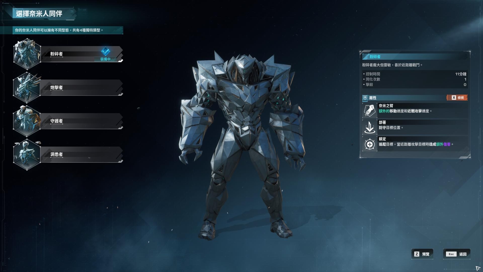 当战役结束之后会进入统计画面,如果是跟朋友一起玩就可以在这个画面上看到底是雷队友还是神队友了!换换口味,转换职业以及切换纳米人同伴!