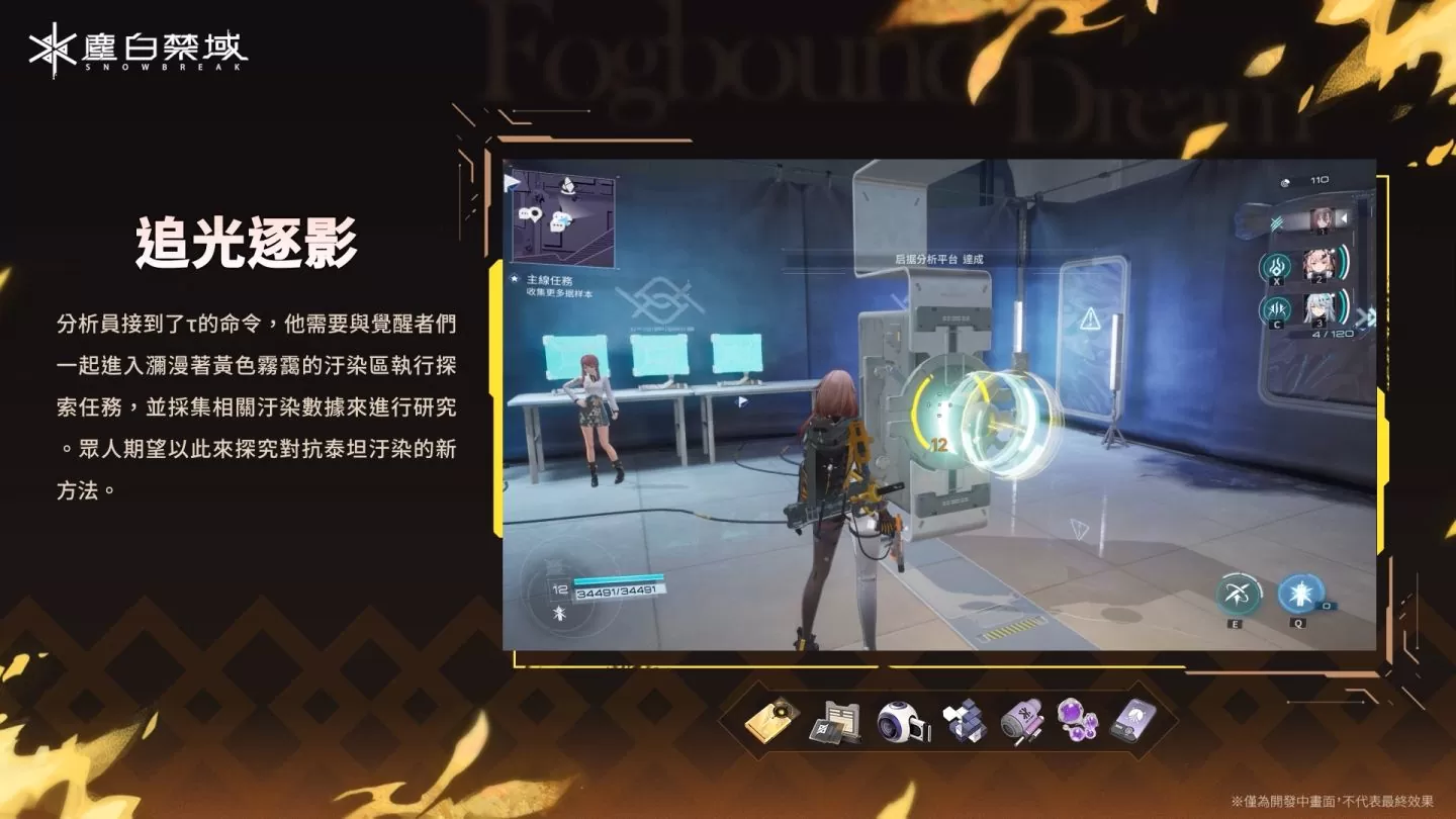 分析员接到了来自τ的命令,与天启者们一同进入黄色雾靄的污染区进行自主探索,协助世界树公司寻找样本并兑换奖励。 污染区为开放地图,区域内还有大型晶簇、信息态残像等多种隐藏剧情和任务,各位分析员们可以自由探索。