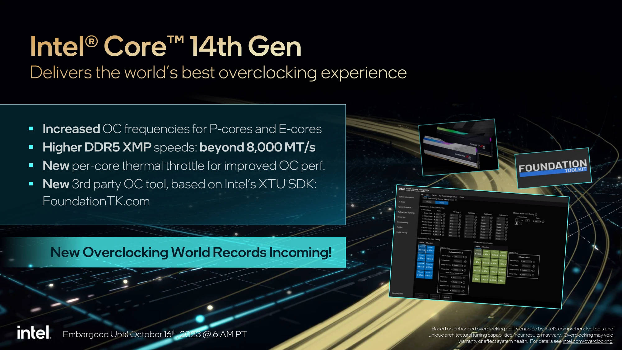 INTEL 声称 INTEL CORE 14TH GEN “HIGHER DDR5 XMP SPEEDS BEYOND 8,000 MT/s”,将带来世上最佳的超频体验。 BZ 把INTEL 喷得体无完肤,因为BZ 认为能 TRAIN 能 POST (开机) 与真实稳定使用存在巨大距离,反指 AMD 那边不这么容易通过 POST 过程,反而更有指标性。
