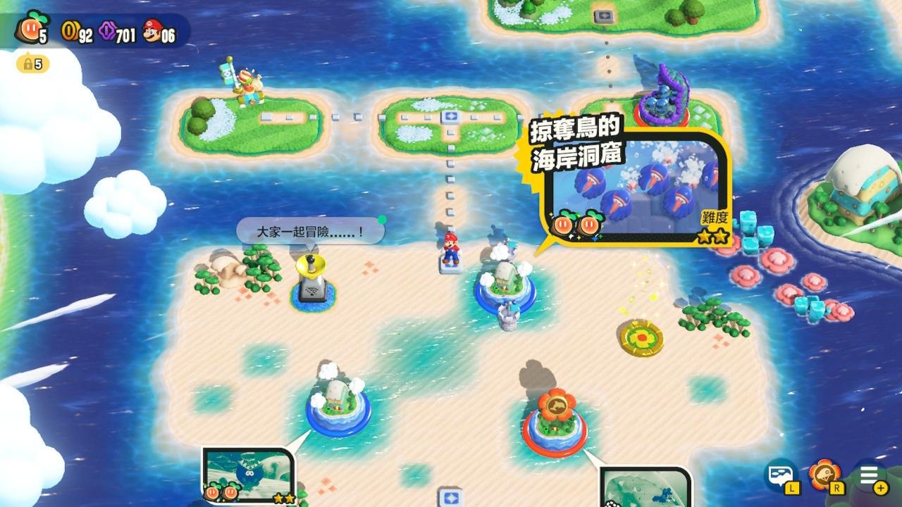 超级马里欧兄弟惊奇地图正中间的花花群岛,连接游戏中的6个地图包含水管岩平原、朵朵高山、黄金瀑布、菌菌采掘场和岩浆树海,要开拓新地图都必须经过花花群岛,最后收集完7颗包含花花群岛的卓越种子后,大魔王关卡也在花花群岛中。 关卡普遍不难,其中5个关卡加上最终战共有8个种子都在库巴船中,以下文章将整理世界地图花花群岛,全20关共34颗种子位置整理。