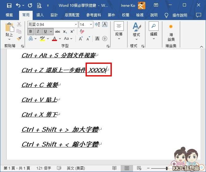 当要剪下一段 Word 文字、表格时,键盘按「Ctrl + X」就可以将刚刚圈选的文字、表格剪下。