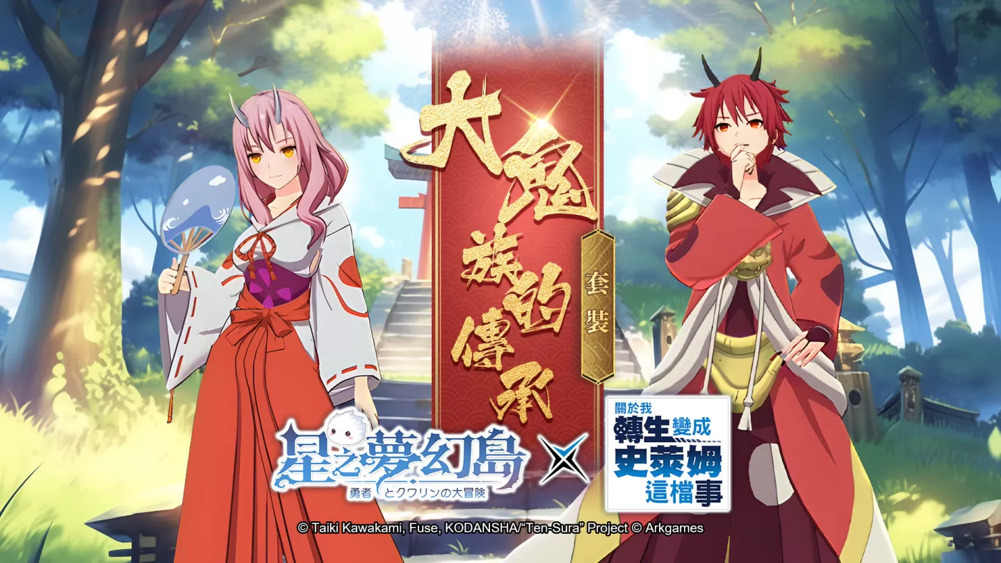 兰加不再只是利姆路的专属坐骑,现在所有玩家都有机会拥有,一同征服《星之梦幻岛》的每个角落! 更令人期待的是,联动活动中推出的「朱菜」、「红丸」的日系经典套装。 现在你不仅能与可爱的动漫角色同行,还能穿上这些经典套装,精心设计的联动内容,让你能够同时穿梭于《星之梦幻岛》与《关于我转生变成史莱姆这档事》的世界,感受动漫中的冒险氛围。
